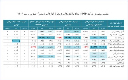 عملکرد ماهانه شرکتهای PSP در مهرماه ۱۴۰۴