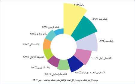 در مقایسه با مهرماه ۱۴۰۳، تعداد تراکنشها ۴.۴۸ درصد و ارزش ریالی آنها ۵۸.۱۶ درصد رشد یافته است. در این ماه، شرکتهای «پرداخت الکترونیک سامان» و «به پرداخت ملت» به ترتیب در سهم تعدادی و مبلغی تراکنشها پیشتاز بودهاند و بانک ملت همچنان بالاترین سهم پذیرش تراکنشهای بازار را به خود اختصاص داده است.