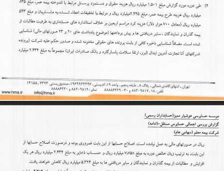 در بندی دیگر حسابرس شرکت نیز با لحنی غیرقابلتعبیر اعلام کرده که به دلیل شناسایی برخی هزینهها و عدم ذخیرهگیری کافی برای پروندههای حقوقی مختومه، اصلاح حسابها ضروری است.
