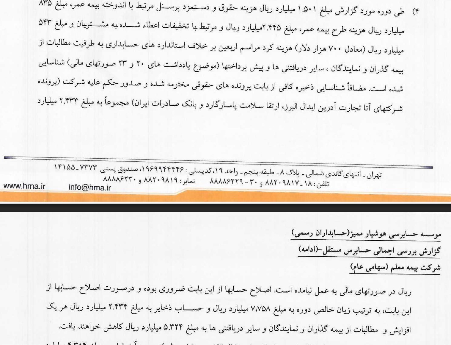 در شش ماهه 1404و پس از استقرار مدیرانی که خود از بدنه بیمه مرکزی آمدهاند، همان شرکت با تعدیل موارد حسابرس با بیش از یک همت زیان انباشته مواجه است و در آستانه شمول ماده ۱۴۱ قانون تجارت قرار دارد. این تناقض، صرفاً مدیریتی نیست، این یک مسئله نظارتی است.